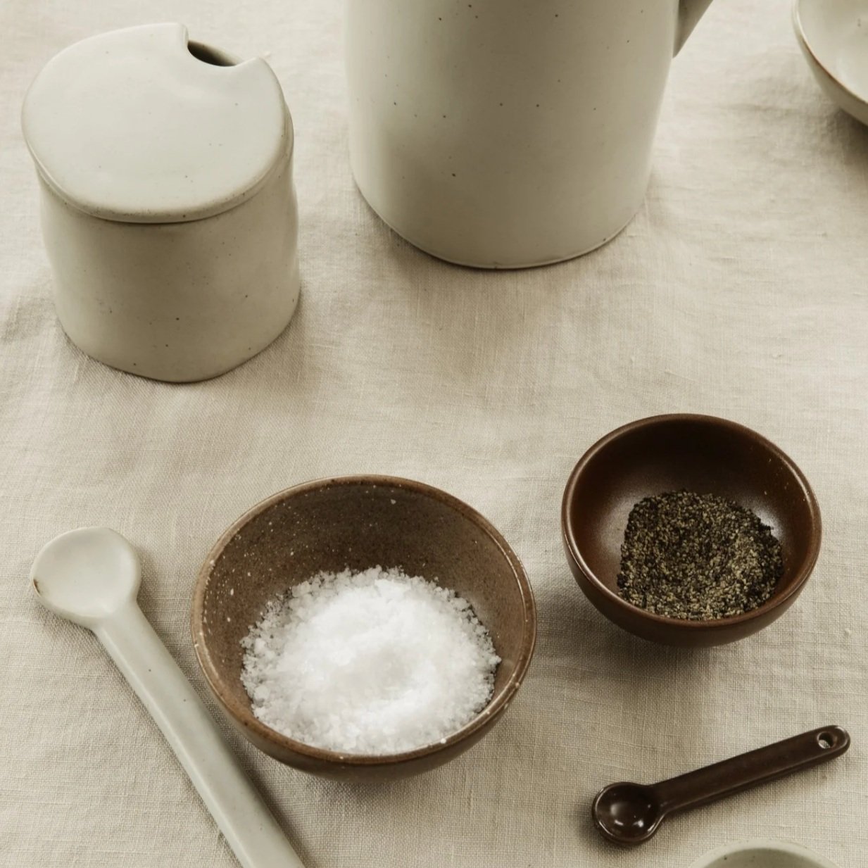Flow is a series of perfectly imperfect tableware made to modern sensibilities using traditional craftsmanship techniques. All the items are glazed to achieve a unique expression. Topped with a lid and complete with a serving spoon, this nostalgic yet modern jar works as well for jam as it does for sugar or salt.