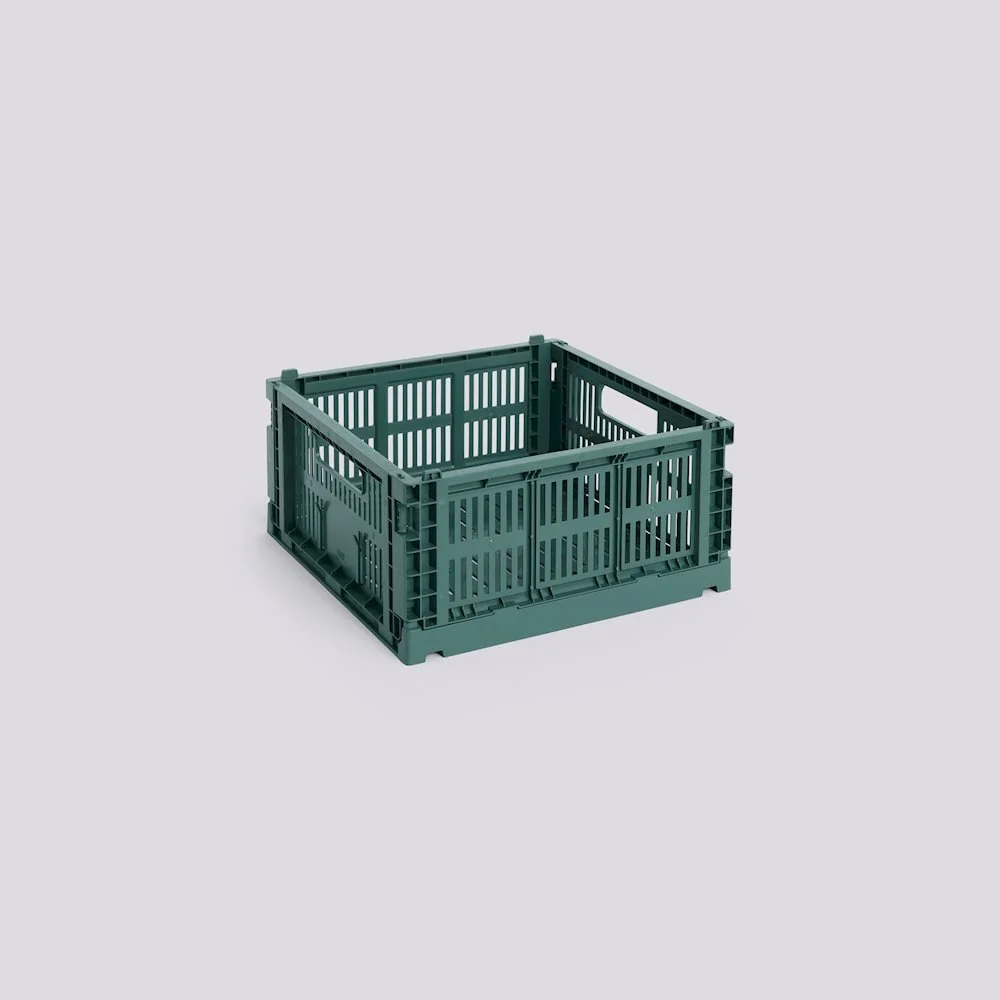 HAY Colour Crate is a series of colourful storage boxes with a distinctive, perforated design. Made from 100% recycled post-consumer plastic waste in a variety of different colours and sizes, the crates can be stacked on top of one another in different size combinations. The multifunctional crates are suitable for storing and organising a wide range of items on shelves, tables or inside cupboards.